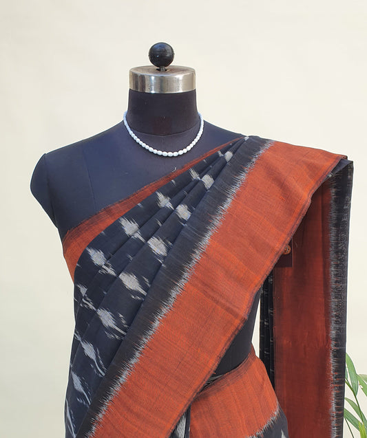 Black & Rust Hand Woven Pochampalli Ikkat Saree