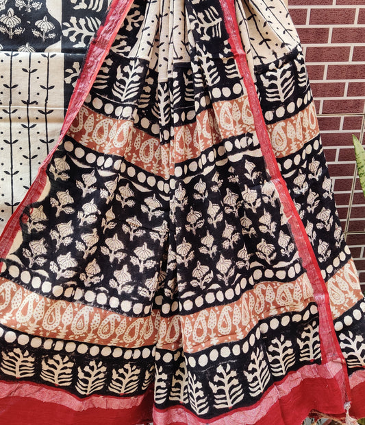 Beige & Black Chanderi Saree