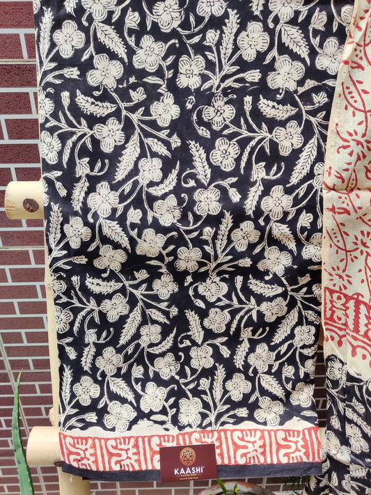 Black & Bisque Hand Block Print Chanderi Suit CHHB-0012