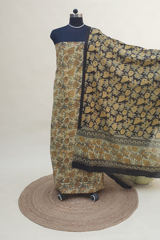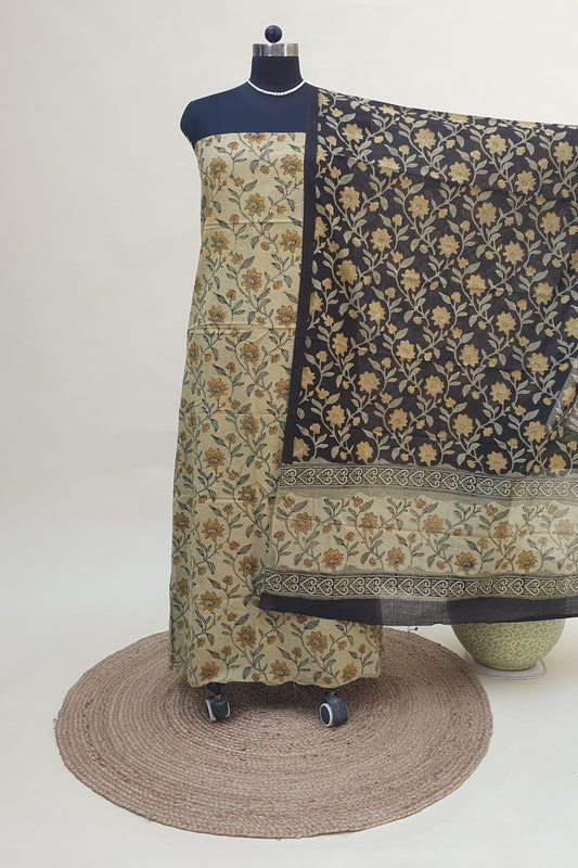 Beige & Black HBP Cotton Suit with Linen Dupatta CLHB-0002