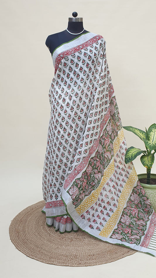 Shubhra Suvarnam HBP Linen Saree | LNHB-0023