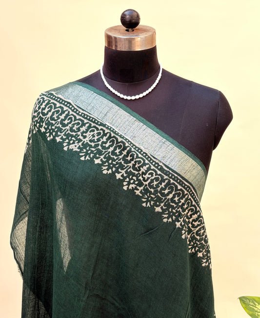 Forrest Green HBP Linen Saree | LNHB-AN8201