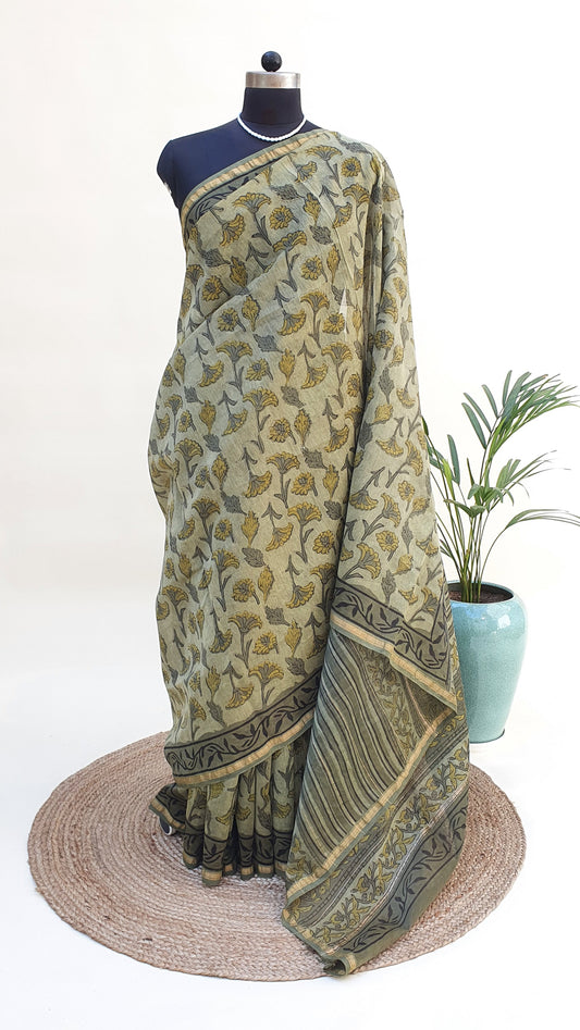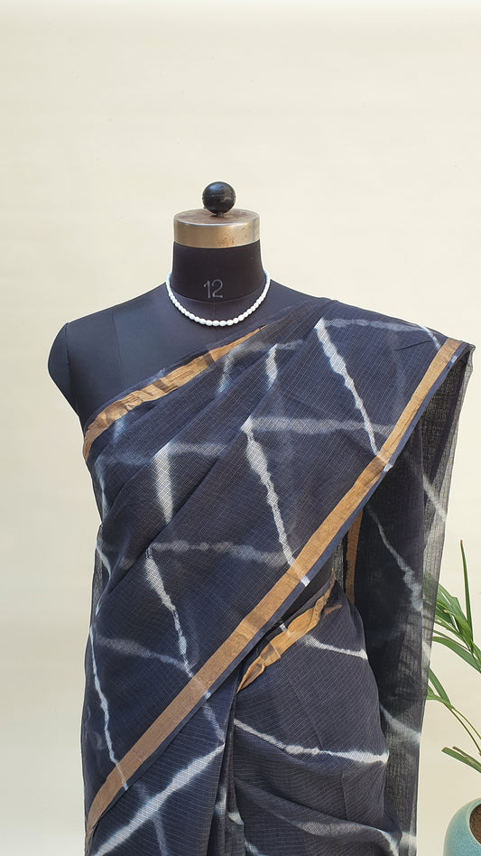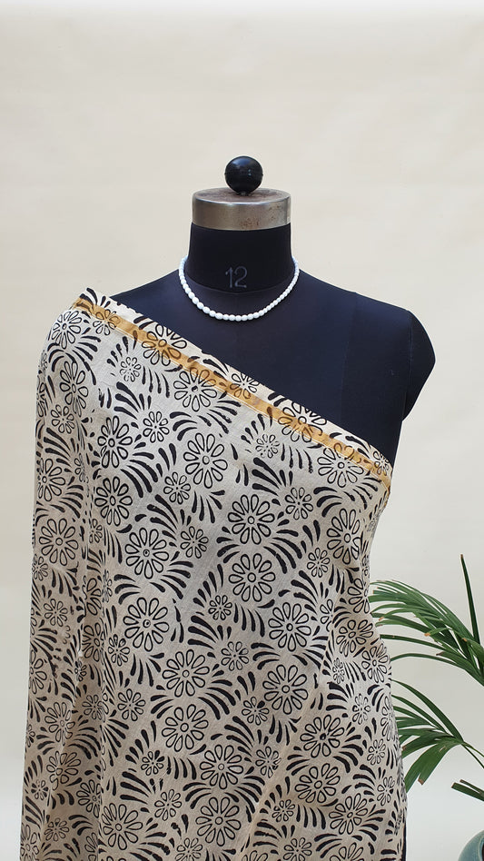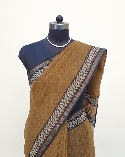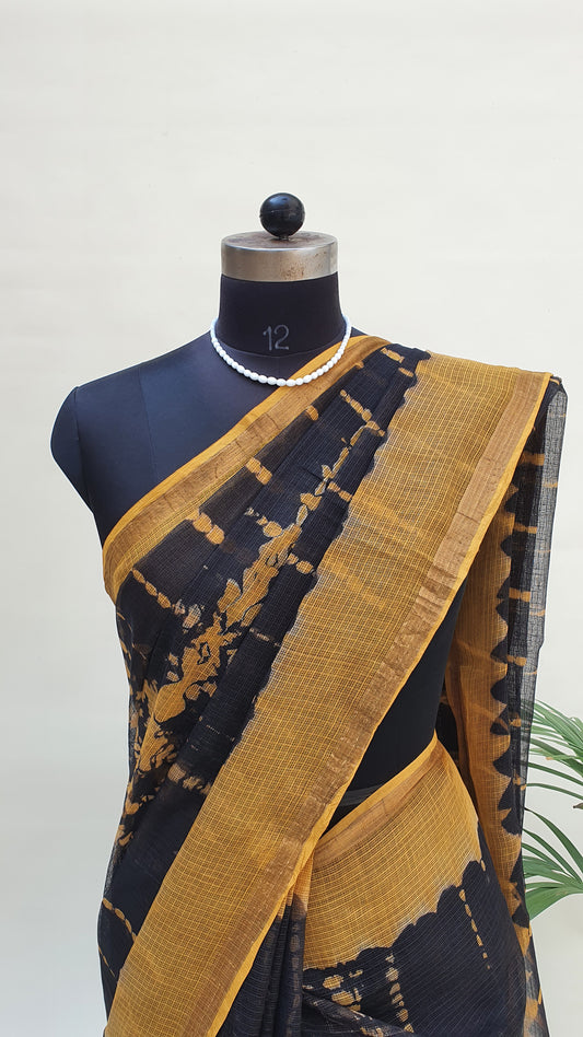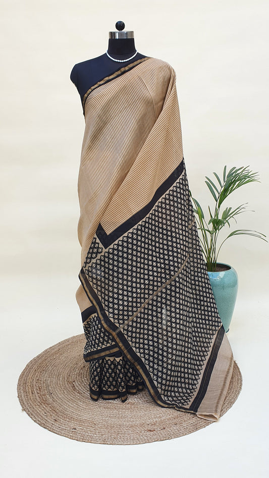 Black/ Mustard Border Chanderi Saree SCCH-0014