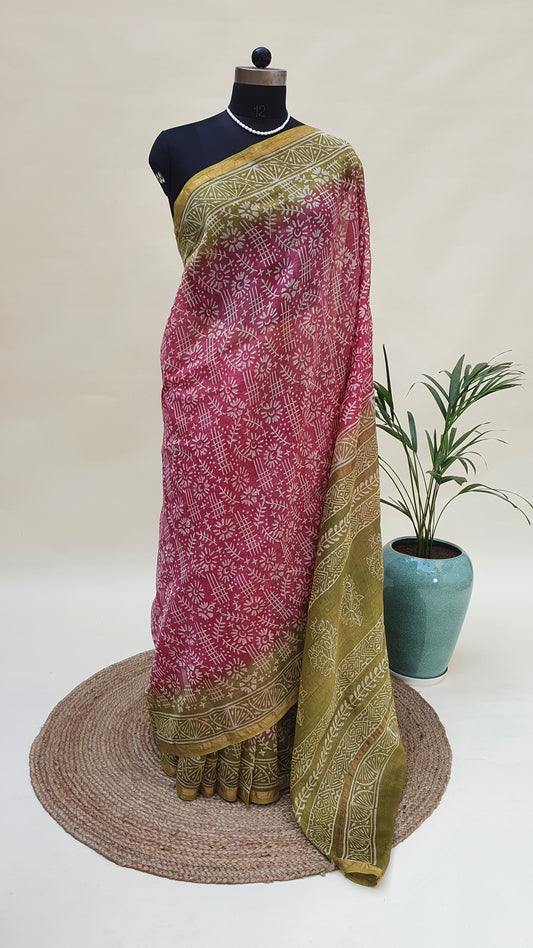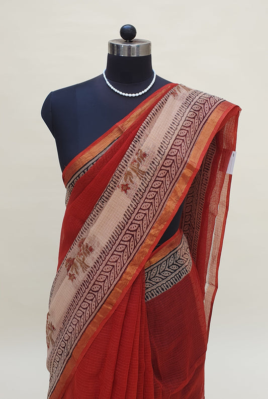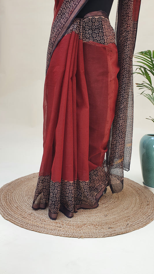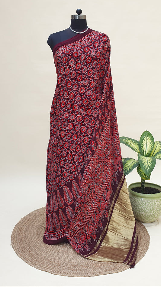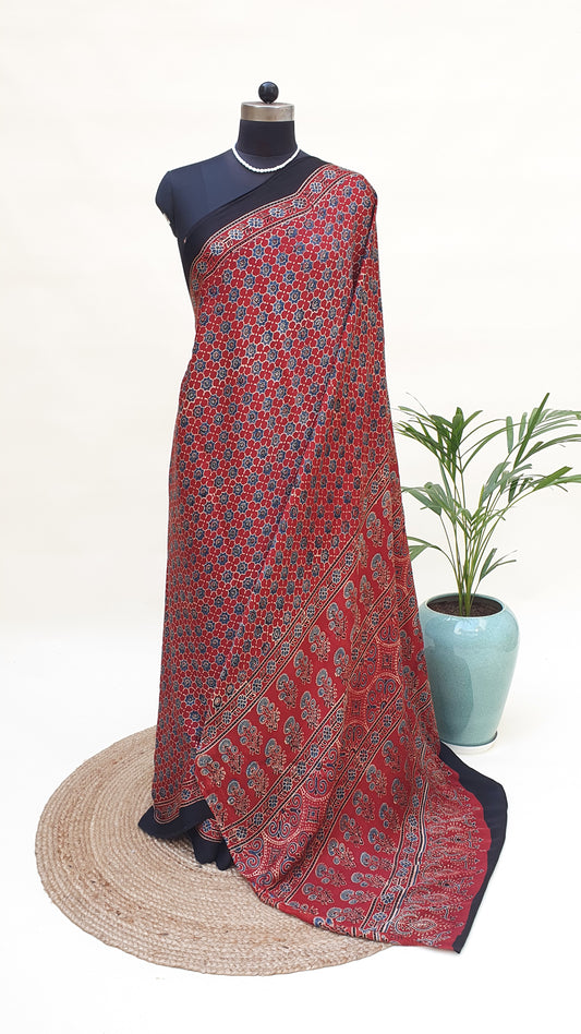 Raktambari Ajrakh Modal Silk Saree | Zari Pallu – MSAJ-0012