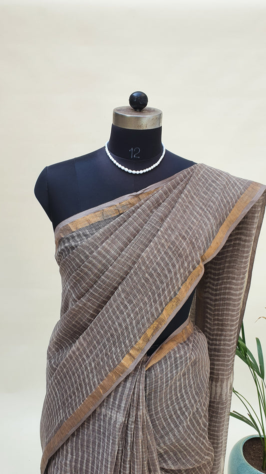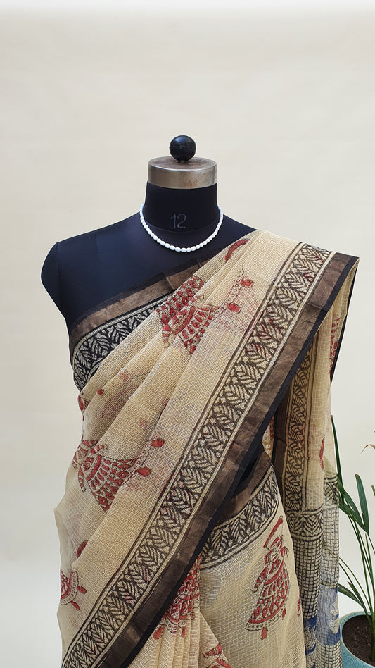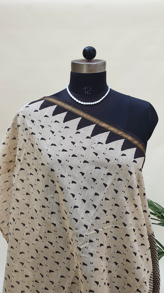 Vintage Beige Cotton Silk Chanderi Saree SCCH-0011