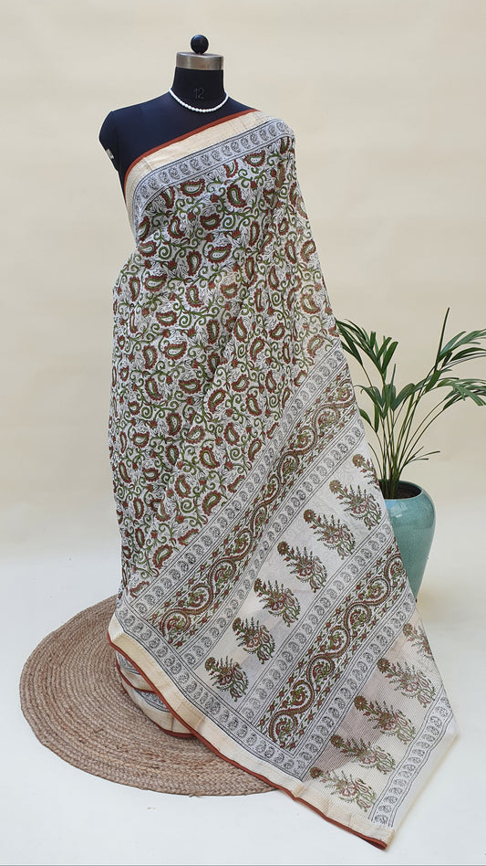 Kaamini Ajrakh Modal Silk Saree | Zari Pallu – MSAJ-0014