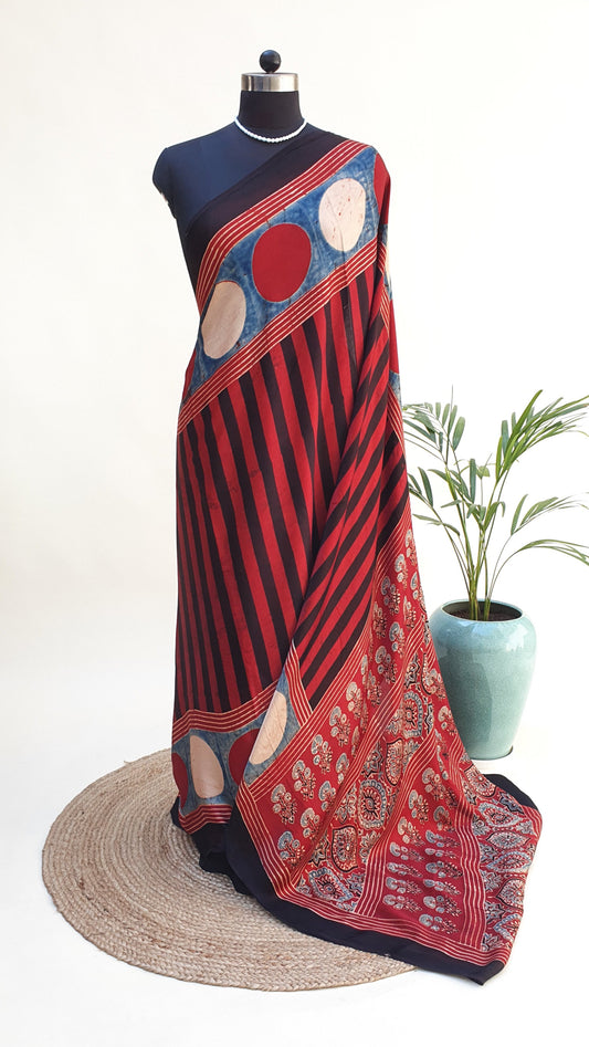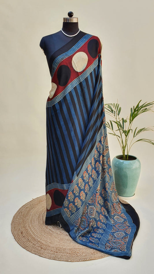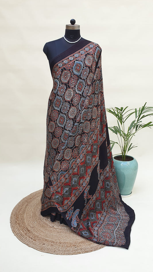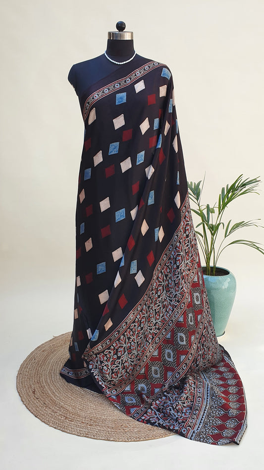 Noir Mosaic Ajrakh Modal Silk Saree MSAJ-0010