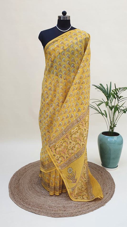 Yellow HBP Mul Cotton Saree MCHB-0001