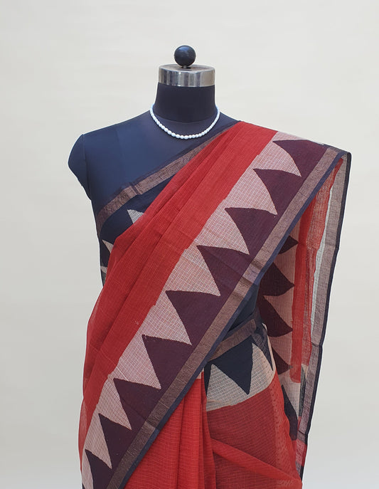 Red Ajrakh Modal Silk Saree MSAJ-0006