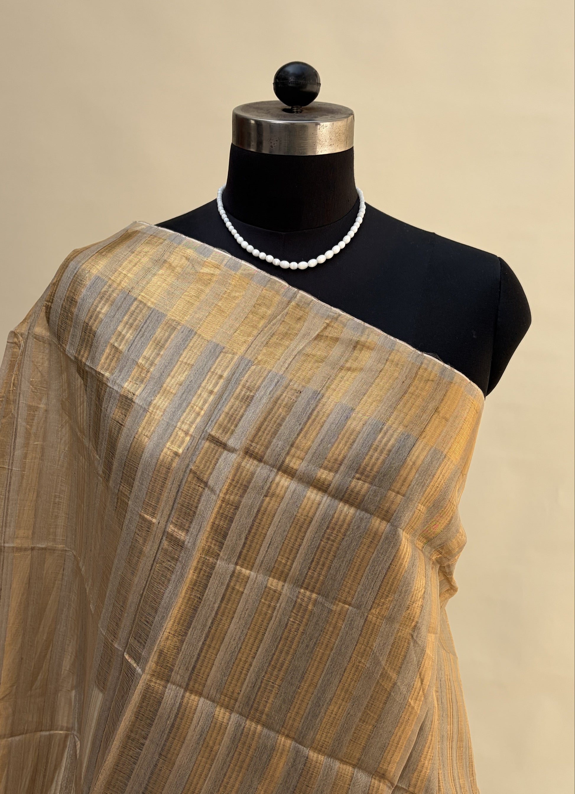 Straight from the loom to your wardrobe, this saree holds the kind of quiet craftsmanship that you notice more the longer you look. The Tussar weave gives the fabric a natural, organic texture that sits on the skin like a second layer. Every fold, every drape, every catch of light reveals something new about this piece.