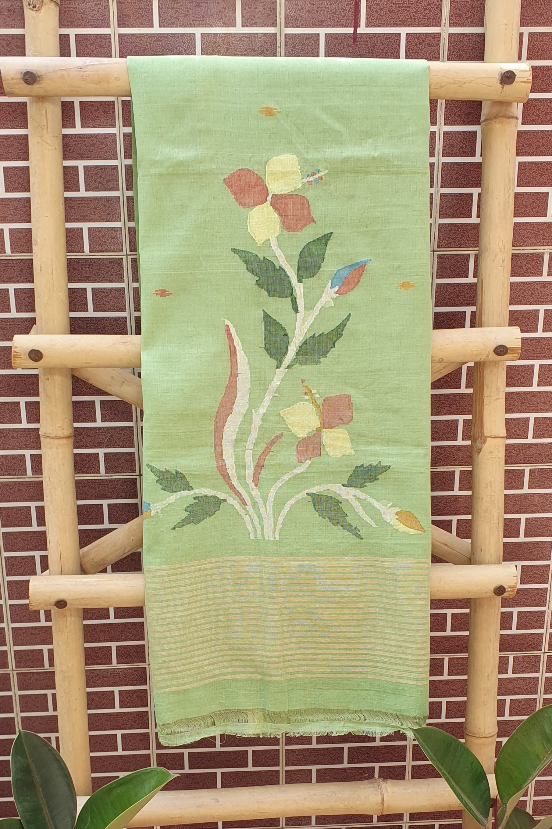 Flaunt some floral fun with our Fern Green Jamdani Cotton Suit! This treasure brings ancient weaving magic to your wardrobe with its playful patterns dancing across cool cotton. It's like wearing a secret garden in the most delightful shade of green! Perfect for turning heads and starting conversations about your fabulous fashion sense.