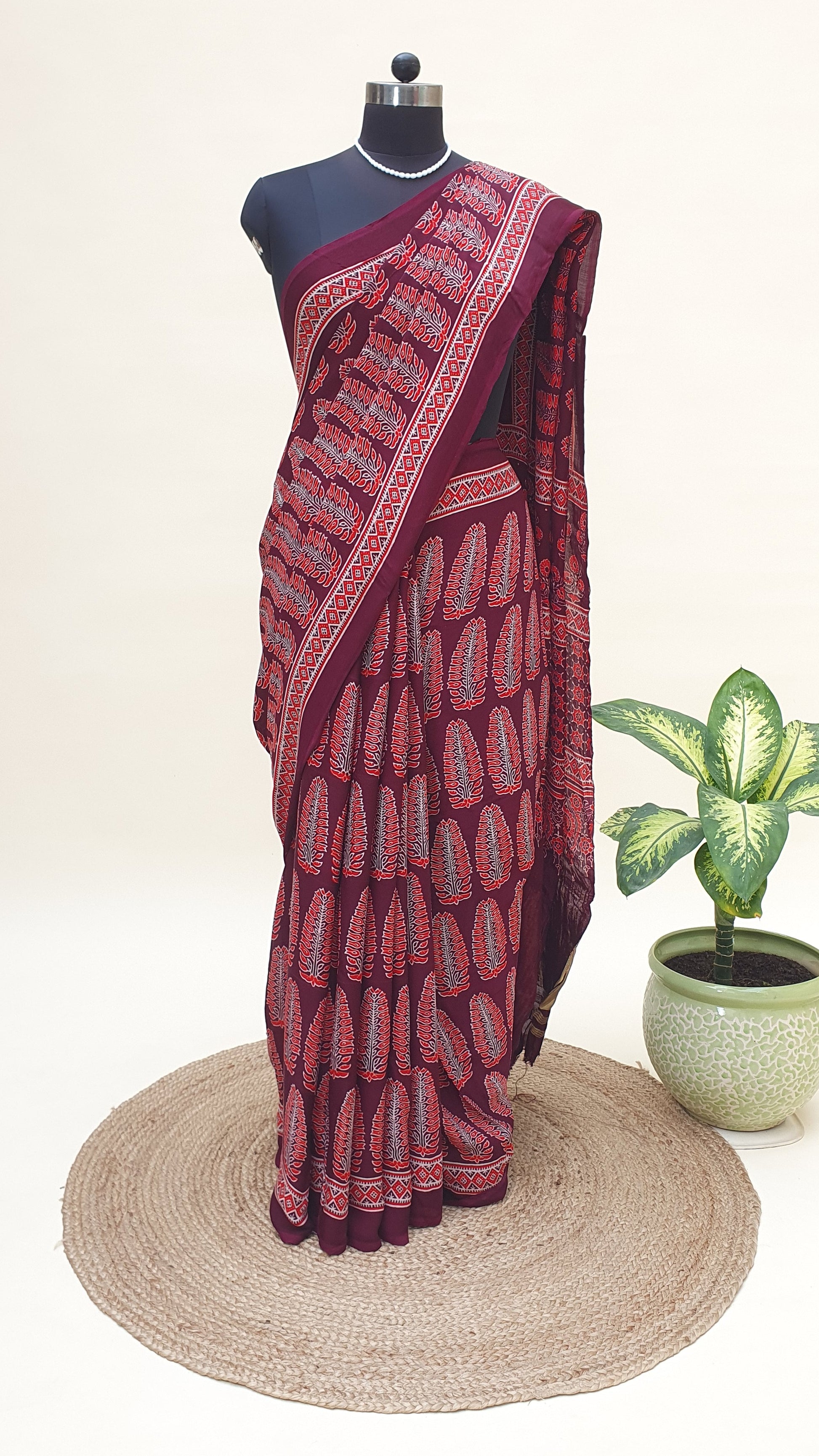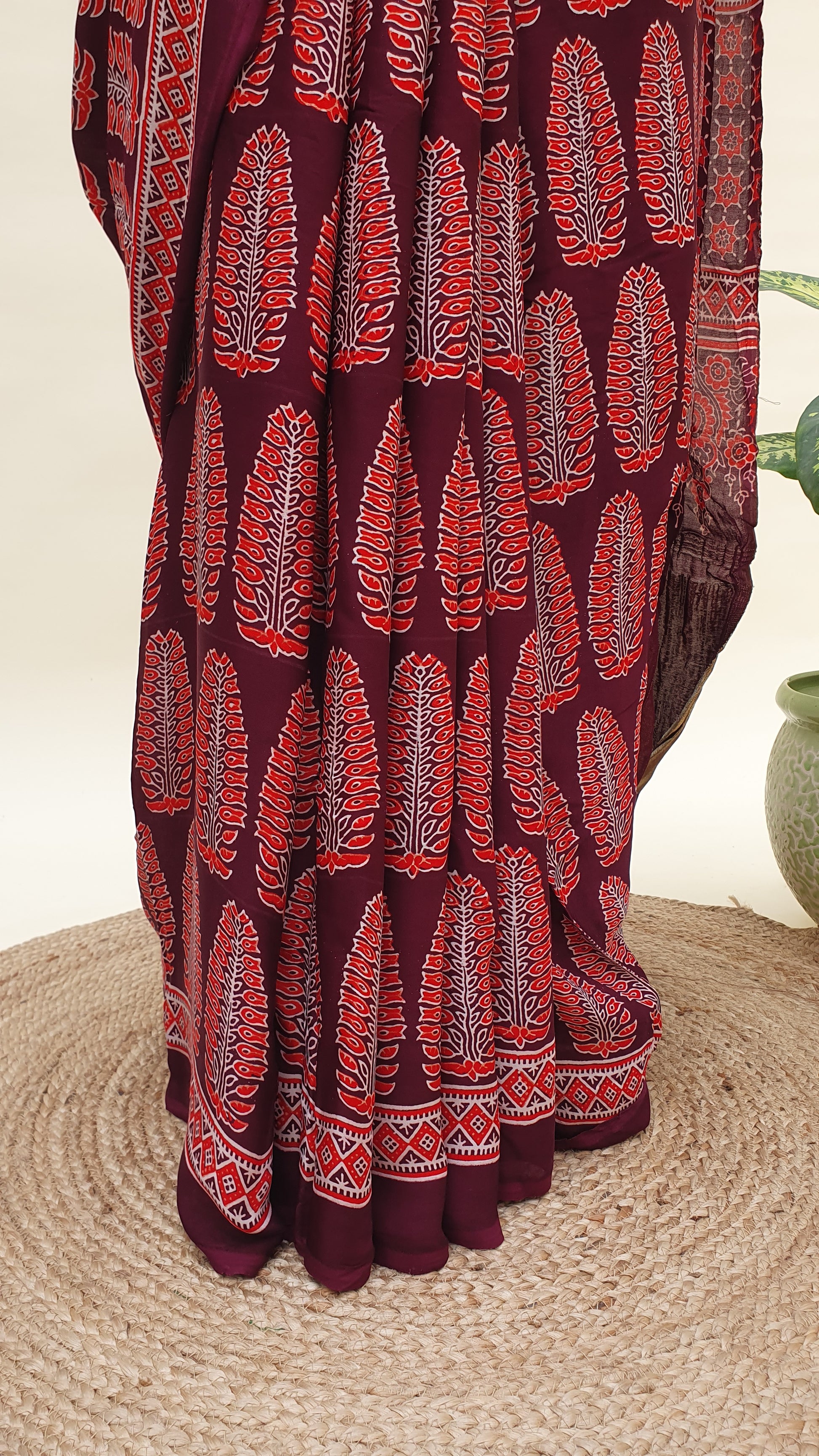 Raktambari Ajrakh Modal Silk Saree | Zari Pallu – MSAJ-0012
